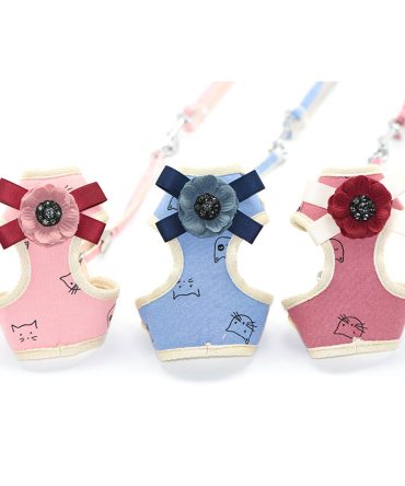 Perro transpirable pecho y la espalda con el diamante pegajoso bolsillo de malla de flores